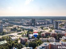 - Parvekkeelta näkymät länteen kadulle ja kerrostaloalueelle.