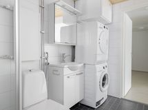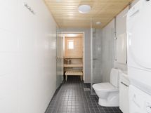 - Suihku, Suihkuseinä, Pesutilojen kuvaus: kylpyhuoneessa 1 kpl suihku, allaskaluste, peilikaappi, pesukone ja kuivasrumpu, wc-istuin ja bideesuihku, lattialämmitys.