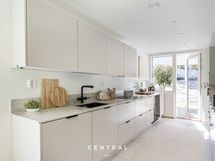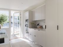 - Keittiön varusteet: Jääkaappipakastin, uuni, liesi, astianpesukone, mikroaaltouuni, liesituuletin ja viinikaappi. Liesi: Induktioliesi.