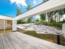 - Olohuoneesta ja etuterassilta näkymät yhtiön pihan yli itään, jossa meri ja satama-alue pilkottaa. Omalla kattoterassilla näkyy myös meri, puiden välistä. Takaterassi länteen, jossa kalliota. Ikkunoita myös etelään, josta näkymät viistosti yhtiön piha-alueelle.