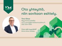 - Timo Oinas, 050 304 1550, timo.oinas@kiinteistomaailma.fi