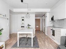 - Kaapistot, jääkaappi/pakastin, astianpesukone, kalusteuuni, keraaminen liesi, liesituuletin, valot, mikroaaltouunin paikka, uuni