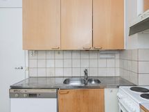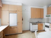 - Keittiön varusteet: Jääkaappi, erillinen pakastin ja liesi. Liesi: Valurautaliesi. Työtason materiaali: Laminaatti.