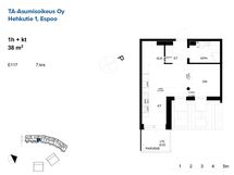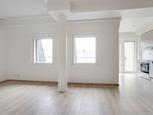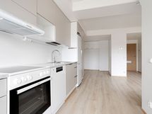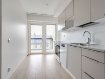 Seitsemännen kerroksen tilava alkovillinen yksiö uudessa asumisoikeustalossa