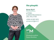 - Kiinteistömaailma, yrittäjä, YKV KTM, Anne Kuiri p. 0408211213, anne.kuiri@km.fi
