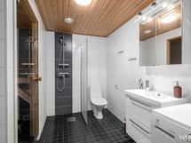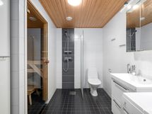 - Kiuas: Sähkökiuas. Lattia: kaakeli