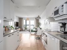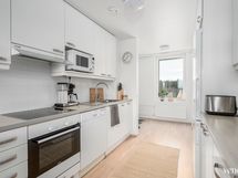 - Keittiön varustus: keraaminen liesi, astianpesukone, erillisuuni, liesituuletin, jääkaappi/pakastin