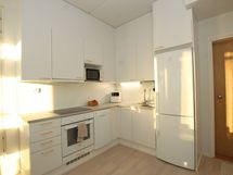 Keittiön varusteet: Jääkaappipakastin, liesituuletin, astianpesukone, liesi ja uuni