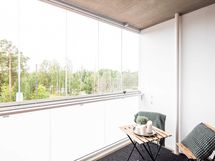 Lasitettu eteläparveke tarjoaa ihanan paikan oleskeluun.