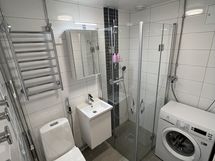 - Suihku, Suihkuseinä, Pesukonevalmius, Peilikaappi, Allaskaappi, Rättipatteri