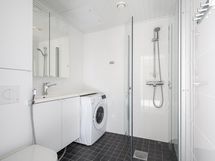 Suihku, Pesukoneliitäntä, Tilaa pesukoneelle, Käsisuihku, Allas, Suihkuseinä, WC-istuin, Peilikaappi