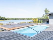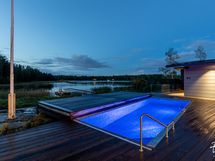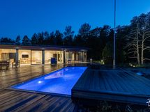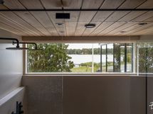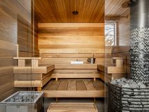 - Kuvaus: Tilavassa saunassa on Dekton laattalattia, lauteet, seinät ja katto on tyylikästä lämpökäsiteltyä magnolia-paneelia. Sauna lämpiää joko sähkökiukaan tai puukiukaan avulla. Lauteilta avautuu silmiä hivelevä merimaisema.