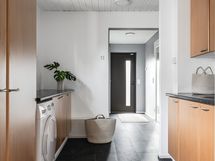 Kellari 115,5 m²: takka-/ja harrastehuone, viinikellari, 1h, kk, kph, varastot ja vaatehuone.