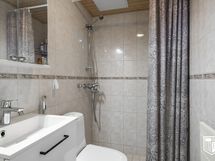 - Pesutilojen kuvaus: Suihku, wc-istuin, käsisuihku, pesuallas, allaskaappi, peilikaappi, pesukoneliitäntä. Lattia ja seinät laatoitettu, lattialämmitys mukavuuslämmöllä. Remontoitu 2007. Suihkunurkan silikonit ja laattasaumat uusittu 2025. Erillisen WC:n kuvaus: Wc-istuin, käsisuihku, suihku, pesuallas, allaskaappi, peilikaappi. Lattia ja seinät laatoitettu.