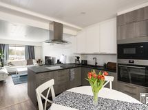 - Jääkaappipakastin, integroitu astianpesukone ja mikro, erillisuuni, keraaminen liesitaso, liesituuletin, tasot ja kaapistot. Lattia laminaattia. Keittiö remontoitu 2020.