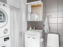 - Sauna, sähkökiuas, kylpyhuone, erillinen wc, suihku, suihkuseinä, peilikaappi kph ja wc, allaskaappi kph ja wc, pesukoneliitäntä kph, lattialämmitys sähköinen mukavuuslämmitys kph (ei sauna), wc ja eteinen, kiinteät valaisimet. ikkuna erillinen wc ja sauna, käsisuihku wc ja kph