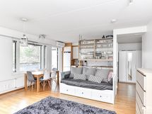 Asunnon pohjaratkaisu on toimiva ja avara. Olohuone ja keittiö muodostavat yhtenäisen tilan, jossa on mukava viettää aikaa perheen ja ystävien kanssa. Keittiössä on mukavasti kaappitilaa. Kylpyhuone ja asunnon sauna on myös uusittu vuonna 2017.