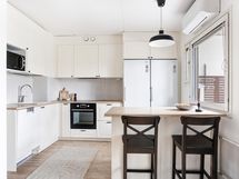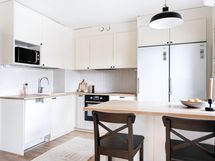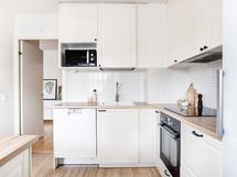 - LG Jääkaappi, LG pakastinkaappi, induktiotaso, kiertoilmauuni (pyrolyysitoiminto), liesituuletin/aktiivihiilisuodatin, astianpesukone, kaapistot, laminaattitasot, kiinteät valaisimet