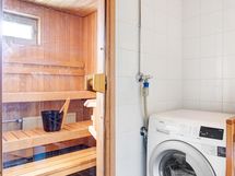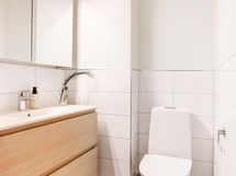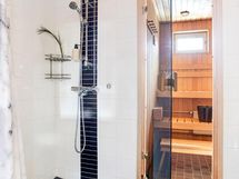 - Kylpyhuone: suihku, peili, allas, pesukoneliitäntä, sauna sähkökiuas, saunassa tuuletusikkuna, kiinteät valaisimet Erillinen wc: wc-istuin, allaskaappi, peilikaappi, bide-suihku, kiinteät valaisimet, puolet seinästä laattaa, puolet maalattu
