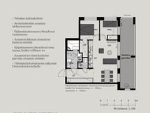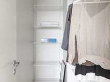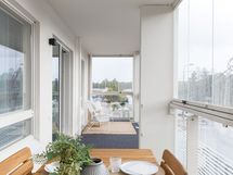 Hyvin suunniteltu asuntopohja on helppo kalustaa ja sieltä löytyy myös kaikki tarvittava: kylpyhuone, erillis-wc, säilytystilan tarve on huomioitu jo eteisessä jatkuen tilavaan vaatehuoneeseen, makuuhuoneiden ikkunat ovat itään ja koko komeuden kruunaa asunnon levyinen lasitettu parveke etelään. Mitä muuta voisit kaivata.