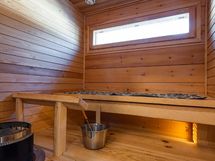 Kylpyhuone, suihku, pesukoneliitäntä, lattialämmitys, erillinen wc, sauna