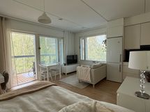 Joulukuussa 2021 valmistuneessa yksiössä on isot ikkunat, parketti-/laattalattiat, laadukkaat materiaalit, liesi, uuni, astianpesukone ja jääkaappipakastin sekä mikä parasta: lasitettu parveke. Taloyhtiössä lisäksi käytettävissä modernit saunatilat.