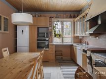 - Keittiössä on erillisuuni, jääkaappi/pakastin-yhdistelmä, induktio liesitaso, astianpesukone, puuhella ja liesituuletin.