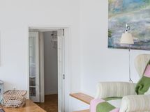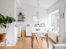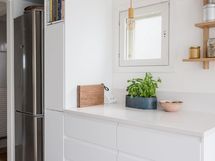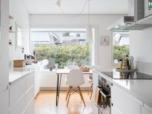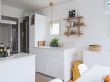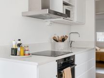 - Jääkaappi/pakastin, erillisuuni, induktioliesi, liesituuletin/ aktiivihiilisuodatin, astianpesukone, kaapistot Ikea 2021. Kiinteät valaisimet. Kivitaso.