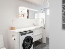 - Sauna, kylpyhuone, suihku/suihkuseinä, lattialämmitys, peilikaappi, kylpyhuonekaapisto, kiinteät valaisimet, wc-istuin, pesukoneliitäntä. Erill.wc, suihku/suihkuseinä, peilit, kylpyhuonekaapisto, kiinteät valaisimet, pyyhekuivain.