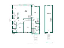 - 3h, k, ruokailutila, takkahuone, sauna/kph/ wc, erill.kph/ wc, varasto/työhuone, piha-alue. Autokatos.