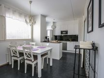 - Tilaa isolle ruokapöydälle, Paljon kaappitilaa, Paljon työskentelytilaa, Laminaattitasot, Astianpesukone, Keraaminen liesi, Liesituuletin, Jää-pakastinkaappi