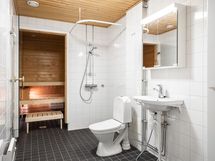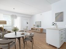 Tässä pohjakerroksen tilavassa kaksiossa yhdistyvät käytännöllisyys ja mukavuus. Avokeittiö avautuu suoraan olohuoneeseen, mikä luo ilmavan ja avoimen tunnelman. Makuuhuone on sopivan kokoinen ja sieltä löytyy hyvät säilytystilat. Tilava kylpyhuone omalla saunalla tekee arjesta entistä mukavampaa. Tämä koti on loistava valinta, jos etsit avaraa ja helposti asuttavaa tilaa rauhallisella sijainnilla.