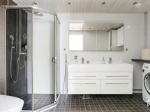 - Pesutilojen kuvaus: Pesuhuone, jossa 2 kattoon upotettua sadesuihkua. Seinät ja lattia laatoitettu. Lattialämmitys. Saneerattu putkiremontin yhteydessä yhtiön toimesta 2014. . Erillisen WC:n kuvaus: Keskikerroksen wc: Ido peilikaappi, allas+kaappi, seinät ja lattia laatoitettu, lattialämmitys sähköllä.