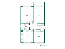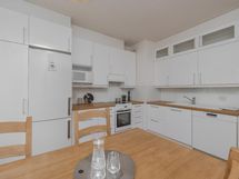 - Valkoiset keittiökaapit, massiivitammitasot. Keittiö on remontoitu 2012. Varustus: Jääkaappipakastin (AEG), keraaminen liesi, liesituuletin, astianpesukone.