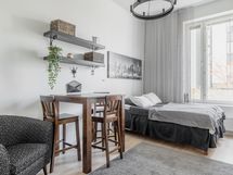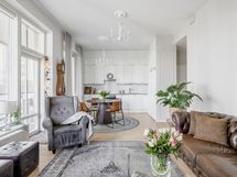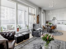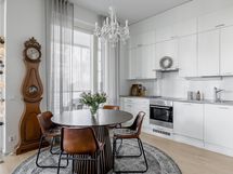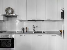 - Jääkaappi, pakastekaappi, erillisuuni, keraaminen liesi, liesituuletin, astianpesukone integroitu (AEG, uusittu vm-2023), kaapistot, kiinteät valaisimet.