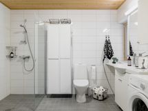 - Sauna, sähkökiuas uusittu 2025, kylpyhuone, erillinen wc, suihku, suihkuseinä kääntyvä, peilikaappi, kaapit, allaskaappi, pesukoneliitäntä, lattialämmitys mukavuuslämmitys kaukolämmöllä (vesikiertoinen), kiinteät valaisimet. Saunan jiirilauteet juuri uusittu