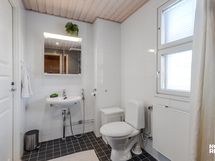 - Pesutilojen kuvaus: Yläkerrassa kylpyhuone on kokonaisuudessaan uusittu yhtiön toimesta koko yhtiössä, tässä huoneistossa v. 2016. Varustus: wc-istuin, suihku, peilikaappi. Lattia: laatta. Seinät: kaakeli. Varustus: wc-istuin, suihku, peilikaappi, kiinteät valaisimet. Erillisen WC:n kuvaus: Alakerrassa erillinen wc. Yläkerrassa wc kylpyhuoneessa, uusittu v. 2016. Varustus: peilikaappi.
