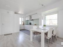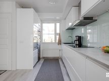 Keittiö kokonaisuudessaan uusittu. Väliseinä poistettu ja saatu avara avokeittiö-olohuone yhdistelmä. Seinät maalattu, lattia uusittu.