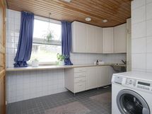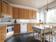 - Kaksi jääkaappipakastinta, erillisuuni, keraaminen liesitaso, liesituuletin, astianpesukone, kaapistot, kiinteät valaisimet.
