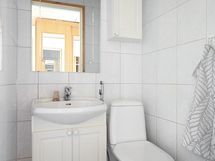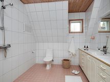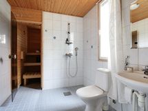 - Sauna, sähkökiuas, kaksi kylpyhuonetta, erillinen wc, kolme suihkua, peilit, kaapit, allaskaappi, pesukoneliitäntä, lattialämmitys, kiinteät valaisimet.