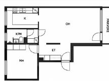 Varustus: Kodinhoitohuoneessa paikka ja liitännät pesutornille. Kylpyhuoneessa kuivauspatteri. Lattialämmitys.