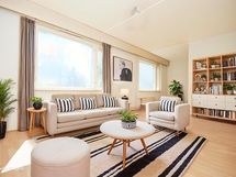 In the peaceful area of Karakallio in Espoo, there is a bright studio coming to sale! This 33 square meter apartment is located on the third floor of the building built in 1967, and the house has an elevator, which makes everyday life more smooth. The apartment is in good condition, and all floors were just renovated in May this year, as were the kitchen cabinets. The pipe renovation is done too.