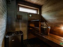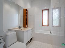 - Sauna: lämpökäsitelty haapa, puukiuas, ikkuna ulos, ikkuna pesuhuoneeseen. Pesuh: suihku, pyyhekoukut, ikkuna käytävälle (ja käytäväikkuna ulos).Erill.wc: peili, allastaso Duratia, kiinteä valaisin, wc, bidesuihku. Yläk.Kph: amme/suihku, peili, allastaso Duratia, allaskaappi, seinäkyllyt, kaappi, wc, ikkuna ulos, sälekaihtimet