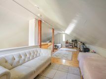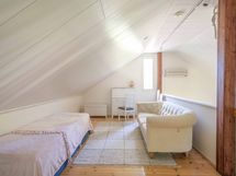 Asuinkerrokssa kaksi makuuhuonetta ja yläkerrassa yksi suuri tila, josta on mahdollista tehdä tarvittaessa kaksi erillistä makuuhuonetta. Kellarikerroksessa maantasolla oleva takkahuone ja toinen harrastushuone. Asuinkerroksessa ja kellarikerroksessa laattalattiat. Yläkerrassa parketti.