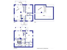 Pinta-alan peruste: Yhtiöjärjestyksen mukainen ja isännöitsijäntodistuksen mukainen. Ei tarkistusmitattu. Pinta-ala voi siis olla edellä mainittua pienempi tai suurempi. Rakennuspiirustusten mukaan Huoneistoala 111m2, Kerrosala 153m2 (1.krs. 79m2, 2.krs. 27m2 ja kellari 47m2). Kokonaisala 192m2.