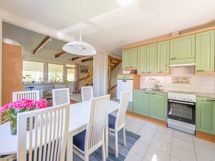Keittiön varusteet: Jääkaappipakastin (Uusittu 2020), astianpesukone (Uusittu 2020), liesi (Uusittu 2024) ja liesituuletin. Liesi: Induktioliesi. Työtason materiaali: Kivi.