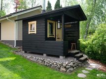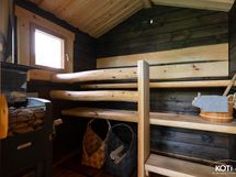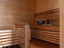 Kiuas: Heti valmis -sähkökiuas. Kellarin pesutiloissa sähkösauna. Ulkona erillinen puusauna.