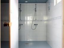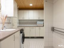 Pesutilojen varusteet: Suihku ja lattialämmitys. Pesutilojen kuvaus: Tilava kylpyhuone kellarissa sisäsaunan yhteydessä. Suihku myös asuintilojen erillisessä WC:ssä. Erillisten WC:n lukumäärä: 2. Erillisen WC:n varusteet: WC-istuin, allaskaappi ja lattialämmitys. Erillisen WC:n kuvaus: Erillinen WC kellarissa kodinhoitohuoneen ja saunatilojen välissä, sekä asuinkerroksessa. Asuinkerroksen WC:ssä suihku.