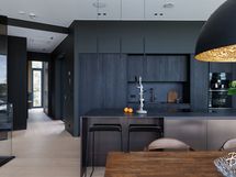 - Liesi: induktio, erillisuuni. Työtasot: kivi. Kylmäsäilytys: jääkaappi, pakastin, viinikaappi. Varustus: mikroaaltouuni, astianpesukone, irralliset kaapistot, irralliset saarekkeet, kiinteät valaisimet, liesituuletin / suodatin. Italialainen Poliform, ebenöljytty ja pronssi ovet, iso saareke, Mielen wifi koneet