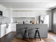 - Liesi: induktio, erillisuuni. Työtasot: kivi. Kylmäsäilytys: jääkaappi/pakastin. Varustus: mikroaaltouuni, astianpesukone, liesituuletin / suodatin. Keittiö remontoitu 2016 (Kvik),
